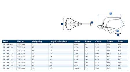 Lewmar, Epsilon-anker, rustfrit stål 316, godkendt af ABS og Lloyds – Vægt: 50 kg